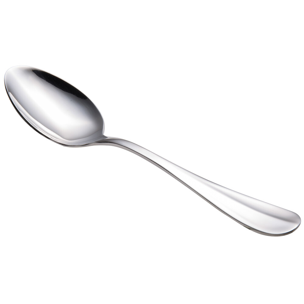 Complete your table setting with this Acopa Benson 8 1/8" serving spoon. Pair it with the rest of the Benson line to create a coherent and attractive table setting. Your guests are sure to appreciate the sturdy construction of this flatware, and it won't break your budget! Made of stainless steel, it will be a long lasting and attractive addition to your busy dining area. It is great for completing table settings at hotels, bistros, and catered events.