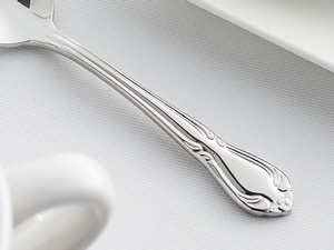 Featuring a subtle scroll pattern and curved soft edges, this demitasse spoon is constructed to fit comfortably in your patrons' hands.