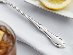 Featuring a subtle scroll pattern and curved soft edges, this iced tea spoon is constructed to fit comfortably in your patrons' hands.