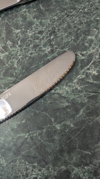 Thank you for the review, Gillian! A Customer Solutions Representative has been in contact with you about this knife. Please note, we recommend drying stainless steel immediately after washing to prevent rust. For more tips on caring for stainless steel flatware, check out the Instructions document in the Resources and Downloads section of this page!