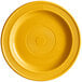 This piece features a mango orange color that adds a pop of color for extra pizazz. It has an iconic rolled edge design that's easy on your servers' hands, yet looks elegant on a creative tabletop. Its concentric, embossed design is great for drawing attention to your food!
