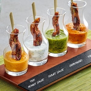 Love these paddles, they are a great look for a flight of anything. We use for a flight of fresh juices in small AmCraft 6 oz milk bottles, also from Webstaurant Store.