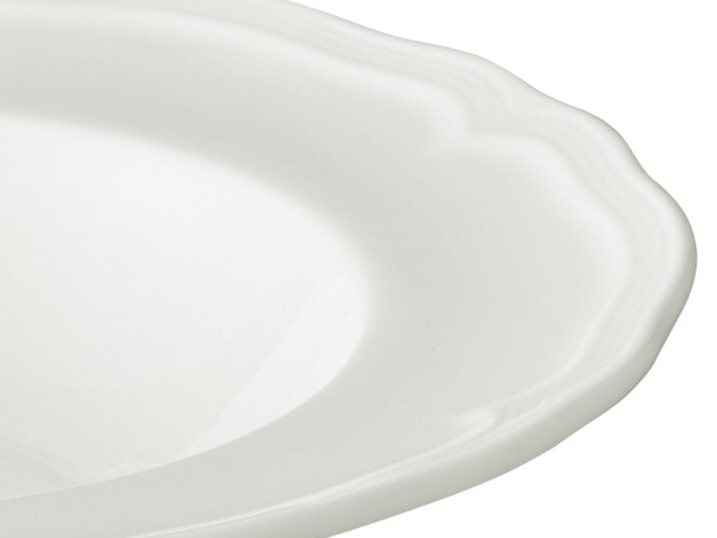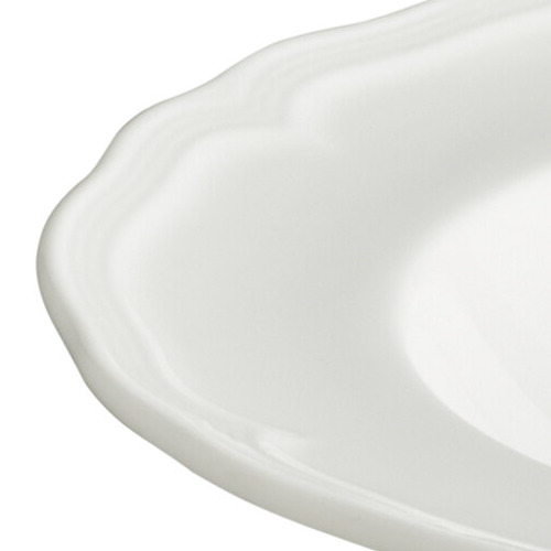 - Beautiful porcelain body with a refined scalloped rim