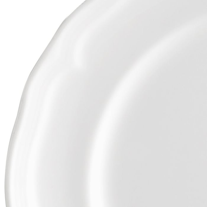 Combining subtle, old-fashioned class and a trendy design, the Condesa line brings a simple sophistication to your table settings. This plate is made of beautiful porcelain and features a wide, scalloped rim and delicate, embossed lines. Exquisite as part of a matching set, this plate is also versatile enough to mix and match with the armor gray color of the Condesa line for an intriguing, stylish look.