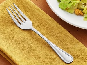 Complete your table setting with this Acopa Edgewood 6 1/2" salad fork. Pair it with the rest of the Edgewood line to create a coherent and attractive table setting. Your guests are sure to appreciate the sturdy construction of this flatware, and it won't break your budget! Made of stainless steel, it will be a long lasting and attractive addition to your busy dining area. It is great for completing table settings at bistros, cafes, and catered events.