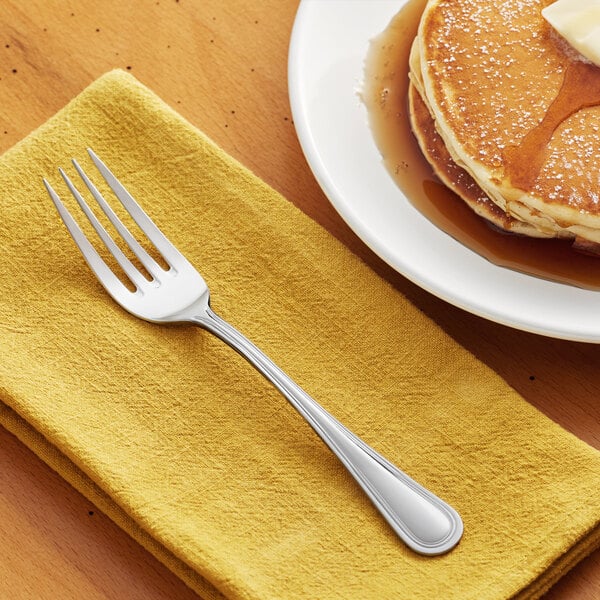 Add an elegant touch to your tabletop setting with this Acopa Edgewood 7 1/2" 18/0 stainless steel heavy weight dinner fork. This dinner fork features a smooth, rimmed handle with clean, simple lines and a slight bend for ease of use. It is perfect for use when serving steak and potatoes, fresh fish, and steamed vegetables. With an 18/0 heavy weight stainless steel construction, this dinner fork is designed with the finest materials and the highest standards in mind.