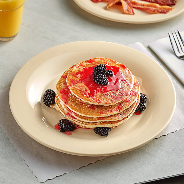 This plate is ideal for serving appetizers, sides, and desserts. It is designed with a wide rim that expertly frames each dish and helps prevent messes or spills by keeping foods and sauces contained on the plate! Plus, its neutral tan color will catch the attention of your patrons and complement your signature foods, allowing them to seemingly pop off the table.