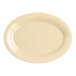 Create tasteful table settings with this Acopa Foundations 12" x 8 7/8" tan wide rim melamine platter.