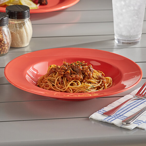 Create tasteful table settings with this Acopa Foundations 16 oz. orange wide rim melamine pasta bowl.