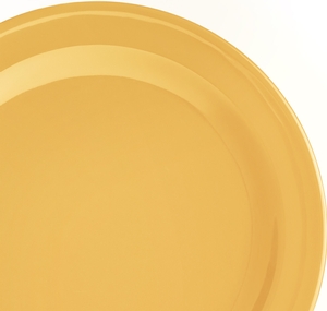 This plate is ideal for serving appetizers, sides, and desserts. It is designed with a narrow rim that expertly frames each dish and helps prevent messes or spills by keeping foods and sauces contained on the plate! Plus, its beautiful yellow color will catch the attention of your patrons and complement your signature foods.