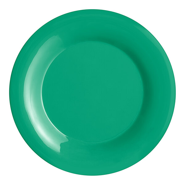 This plate is ideal for serving appetizers, sides, and desserts. It is designed with a wide rim that expertly frames each dish and helps prevent messes or spills by keeping foods and sauces contained on the plate! Plus, its beautiful green color will catch the attention of your patrons and complement your signature foods, allowing them to seemingly pop off the table.