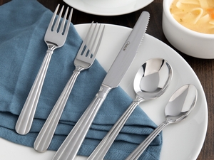 This set includes dinner forks, salad forks, teaspoons, bouillon spoons, and dinner knives, all with a mirror polished finish for a sophisticated appearance. Use the forks to serve up delicious sides and main dishes and the spoons for soups and desserts. With this set, creating an unforgettable tabletop presentation is always effortless.