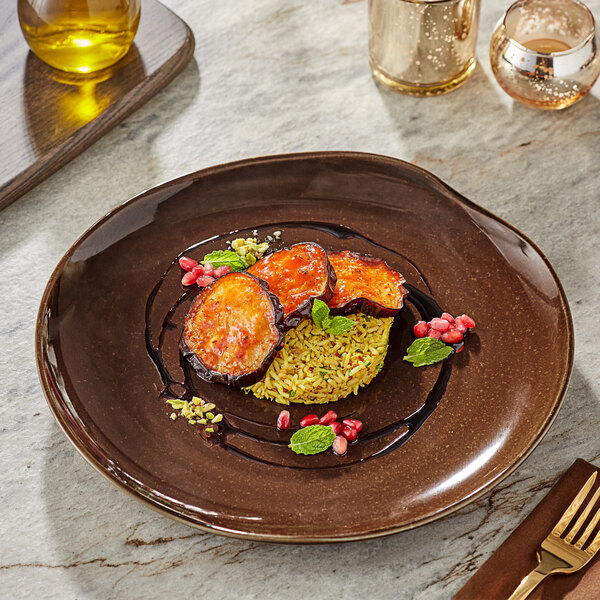 This plate's rich brown reactive glaze adds a pop of color to your table setting, creating a visually appealing presentation. Mix and match this hazel plate with other colors from the collection to create a dynamic and eye-catching display, or let it stand alone as a statement piece.