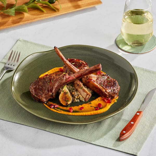 Enhance your dining experience with the Acopa Highlands 11 5/8" round juniper green coupe china plate.