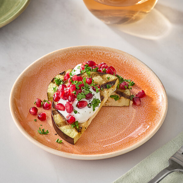 Enhance your dining experience with this Acopa Highlands 6 1/2" round primrose peach coupe china plate.
