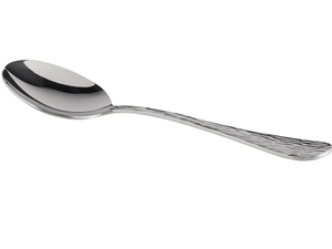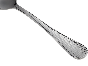 Acopa's Industry flatware collection combines traditional and contemporary elements for a sleek, eye-catching look. Hammered handles provide a distinct feel while beautifully capturing and reflecting light, delivering a polished presentation to your guests.