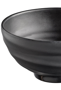 It boasts a sleek, matte black exterior, which helps conceal scratches or fingerprints to maintain a polished look. The Acopa Izumi collection features high-quality melamine dinnerware inspired by Asia. The name "Izumi" is Japanese for "water spring," referring to the ripple-like design on the body of each platter, bowl, and plate.