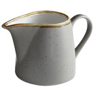 For the perfect combination of rustic style and elegance, introduce this Acopa Keystone 10 oz. granite gray porcelain creamer. Featuring a distinctive granite gray color, this creamer is complemented by beautiful chestnut brown speckles. It provides both durability and style, making it the ideal backdrop for all of your delicious creations. This piece is unique enough to be used as a standalone dish, or play up your tabletop and mix it with other Keystone pieces of like or varying colors. Use this creamer serving alongside piping hot coffee and tea.