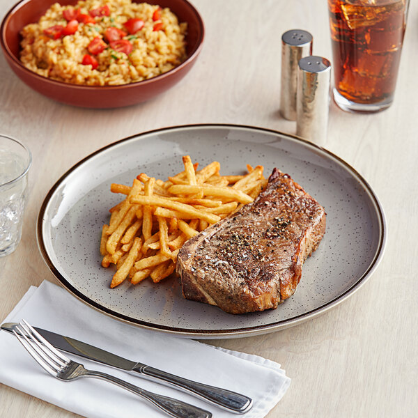 Featuring a distinctive granite gray color, this plate is complemented by beautiful chestnut brown speckles. It provides both durability and style, making it the ideal backdrop for all of your delicious creations. This piece is unique enough to be used as a standalone dish, or play up your tabletop and mix it with other Keystone pieces of like or varying colors.