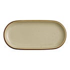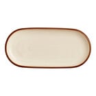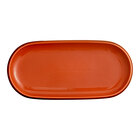 For the perfect combination of rustic style and elegance, introduce this Acopa Keystone 12 1/2" x 6" Sedona orange porcelain oblong coupe platter. Featuring a warm Sedona orange color, this platter is complemented by chestnut brown speckles. It provides both durability and style, making it the ideal backdrop for your delicious creations. This piece is unique enough to be used as a standalone dish, or play up your tabletop and mix it with other Keystone pieces of like or varying colors. Use this platter to serve appetizers and hors d'oeuvres in style.