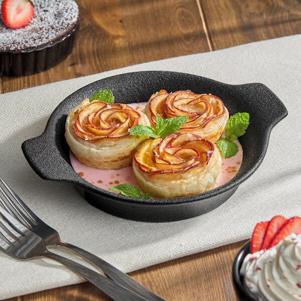 Featuring a rich black color, this souffle dish is meant to mimic the appearance of cast iron for a unique look. This allows you to deliver an enhanced presentation, without worrying about rust or other hassles associated with cooking and serving in cast iron. It provides both durability and style, making it the ideal backdrop for all of your delicious creations. This piece is unique enough to be used as a standalone dish, or play up your tabletop and mix it with other Keystone pieces of like or varying colors.