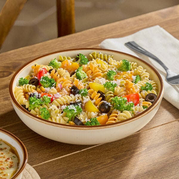 Featuring a creamy white glaze, this bowl is complemented by beautiful chestnut brown speckles. It provides both durability and style, making it the ideal backdrop for all your delicious creations. This piece is unique enough to be used as a standalone dish, or play up your tabletop and mix it with other Keystone pieces of like or varying colors. Use this low bowl to serve a variety of salads and pasta dishes in style!