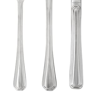 The flatware in the Landsdale line boasts a slim, tapered handle with angled ends and etched edges. A simple, classic silhouette offers a professional appearance, yet doesn't take the focus away from your perfectly-plated culinary creations. Thanks to its firm construction and delicate curves, this flatware is perfectly weighted and balanced to feel comfortable in your patrons' hands.