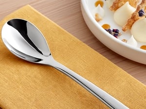 Made of 18/8 stainless steel, this dessert spoon is rust-, corrosion-, and stain-resistant to provide years of quality service.