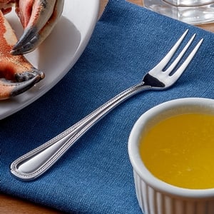 This cocktail / oyster fork is the ideal way to complete any table setting. It provides the perfect blend of style and function. The handle features a classic baguette shape with an attractive beaded rim that adds a captivating look to any dining room without taking the focus away from your perfectly-plated culinary creations.