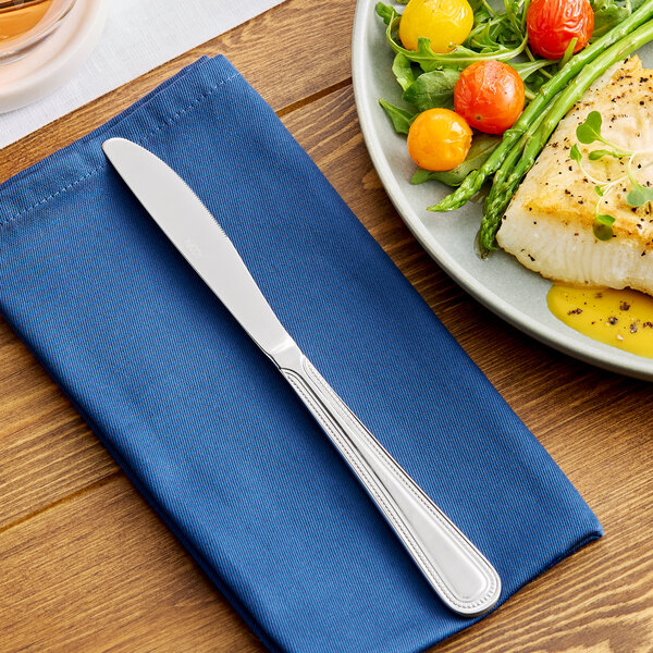 Featuring a classic beaded rim with a smooth, rounded handle, this dinner knife is constructed to fit comfortably in your patrons' hands. Its beautifully hand-polished stainless steel construction has a mirror shine that will elevate any table setting and is sure to catch your guests' attention. It's the perfect addition to any catering operation, restaurant, or hotel and is ideal for use with main entrees like meats or seafood. Try this dinner knife from the Lydia line for a stylish alternative to average flatware!