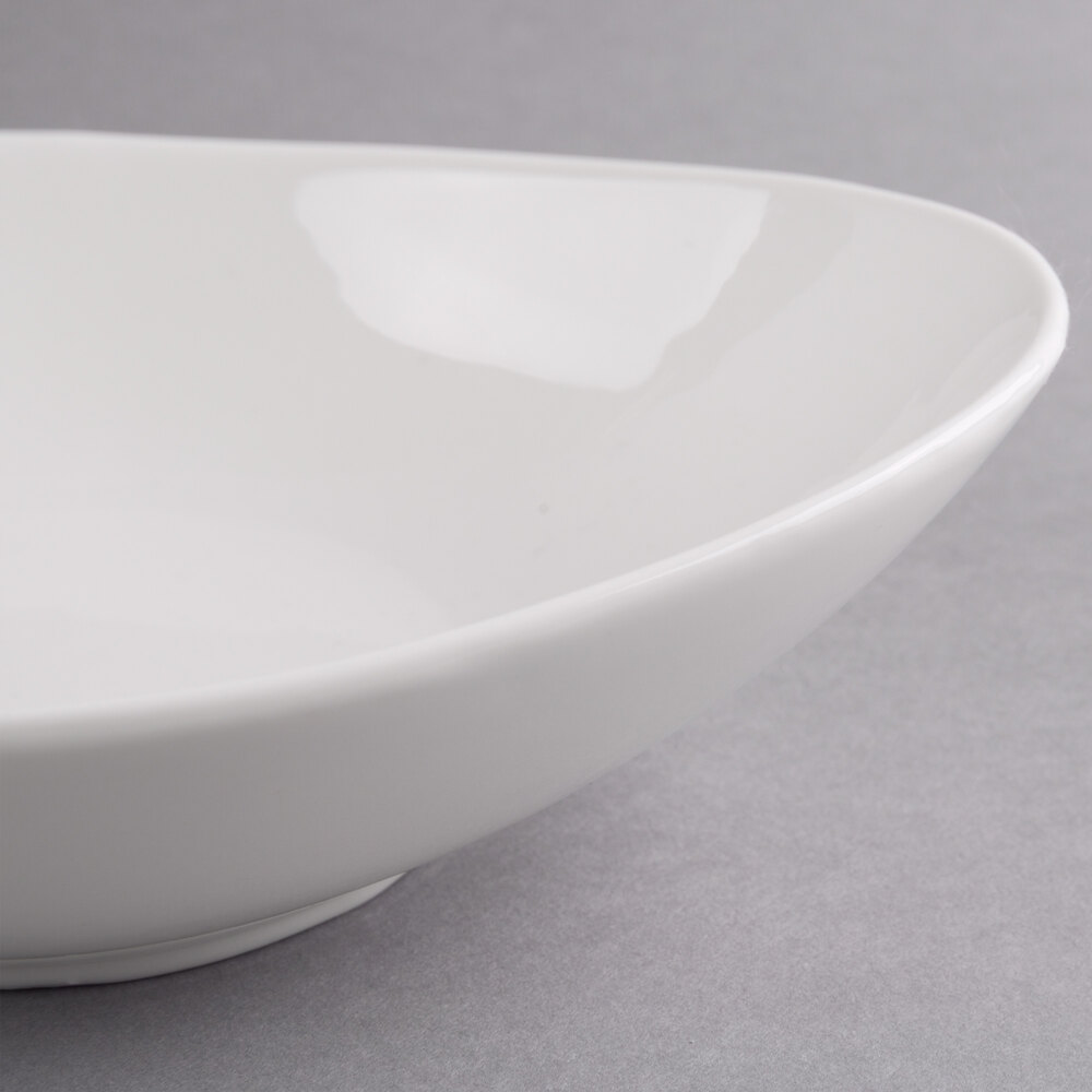 Unleash your chef's creativity by serving meals in this sleek, asymmetric bowl! Perfect for the on-trend cafe, bistro, and catering company, Acopa Nova brings budget-friendly elegance and durability to your table. This bowl features a free-form shape and creamy white color, perfect for accentuating signature dishes and even the simplest orders.