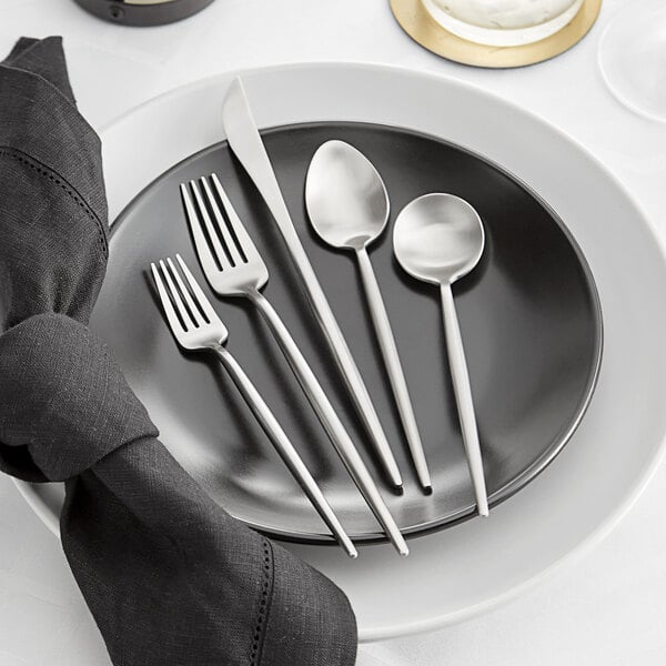 Acopa Odin 18/8 Brushed Stainless Steel Extra Heavy Weight Forged Flatware 5-Piece Set - Sample