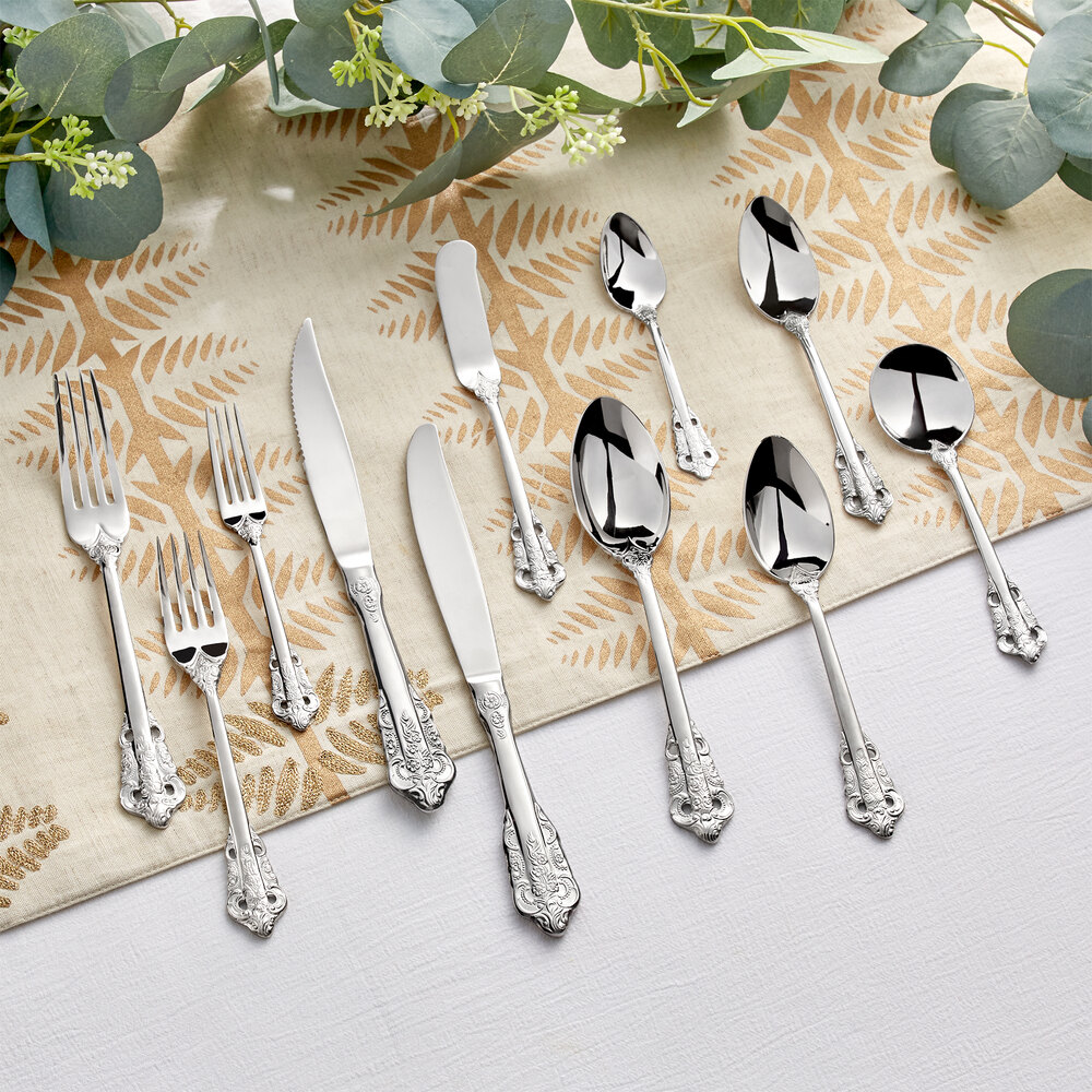 Perfect for serving dessert, salad, and freshly-cut fruit, this fork boasts a durable 18/10 stainless steel construction, which grants it long-lasting use and superior durability. The handle features an intricate floral embossment and scrollwork pattern, and it is both easy to grip and comfortable to hold. The brightly hand-polished mirror finish adds another layer of sophistication.