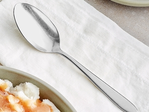 This spoon's design features a simple teardrop-shaped handle design that delivers a simple yet captivating look that's sure to withstand the test of time without taking the focus away from your perfectly-plated culinary creations. Each piece in this versatile collection is perfectly weighted and balanced to feel comfortable in your patrons' hands.