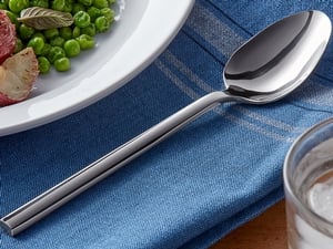This dinner / dessert spoon features clear lines and modern design that will add a sleek touch to any dining area.