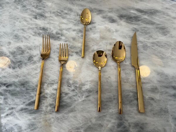 Customers appreciate the elegant and sleek design of this flatware, noting its nice weight and balance. The set is praised for its durability and dishwasher-safe convenience, though some mention occasional water spots. Overall, it's well-regarded for both everyday use and special occasions.