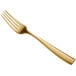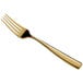 Serve this dinner fork with your main entrees to provide guests with an unforgettable dining experience. Each piece in this versatile collection is designed with soft edges and a slim handle, and is perfectly weighted and balanced to feel comfortable in your patrons' hands. Its gold mirror-shine, hand-polished finish offers a sophisticated, professional appearance, yet doesn't take the focus away from your perfectly plated culinary creations.