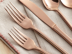 Serve this salad / dessert fork with your side salads, desserts, and freshly-cut fruits to provide guests with an unforgettable dining experience. Each piece in this versatile collection is designed with soft edges and a slim handle, and is perfectly weighted and balanced to feel comfortable in your patrons' hands. Its rose gold mirror-shine, hand-polished finish offers a sophisticated, professional appearance, yet doesn't take the focus away from your perfectly plated culinary creations.