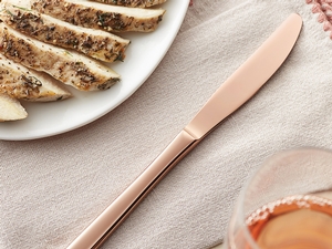 Serve this dinner knife with main entrees to provide guests with an unforgettable dining experience. Each piece in this versatile collection is designed with soft edges and a slim handle, and is perfectly weighted and balanced to feel comfortable in your patrons' hands. Its rose gold mirror-shine, hand-polished finish offers a sophisticated and timeless touch to tables, yet doesn't take the focus away from your perfectly plated culinary creations.