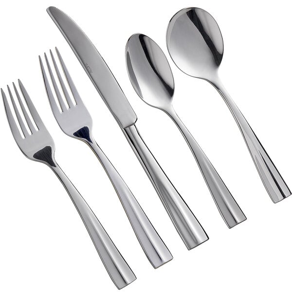This set includes a dinner fork, salad fork, bouillon spoon, teaspoon, and dinner knife, all with a brilliantly hand-polished finish for a sophisticated appearance. Made of 18/0 stainless steel, this set is best used at bistros, cafes, and catered events. It is designed with the finest materials and the highest standards in mind. Use the fork to serve up delicious sides and main dishes and the spoon for soups and desserts. With this set, creating an unforgettable tabletop presentation is always effortless.