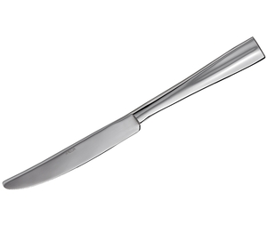 This dinner knife offers a modern twist on the classic baguette handle style and the handle is divided into two identical panels by a raised midline. Its attractive curves bring a sleek look to any dining room without taking the focus away from your perfectly-plated culinary creations.