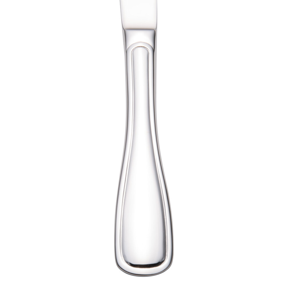 The Acopa Saxton line features a subtle design that will both blend in with and complement a variety of dinnerware styles. Serve this knife with entrees at your restaurant, bistro, or cafe. Its tasteful design and heavy weight make it elegant enough for a catered event, but its simplicity also make it a great everyday choice to go along with your standard dinnerware.