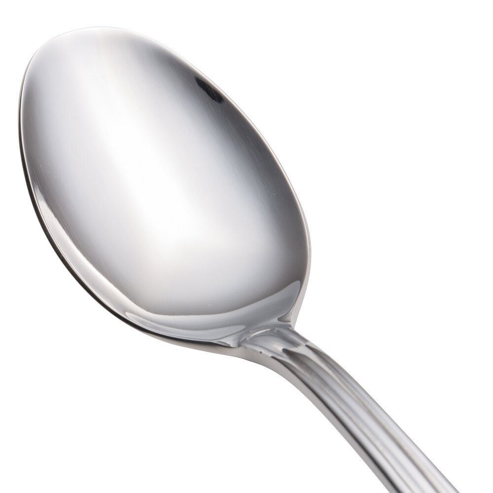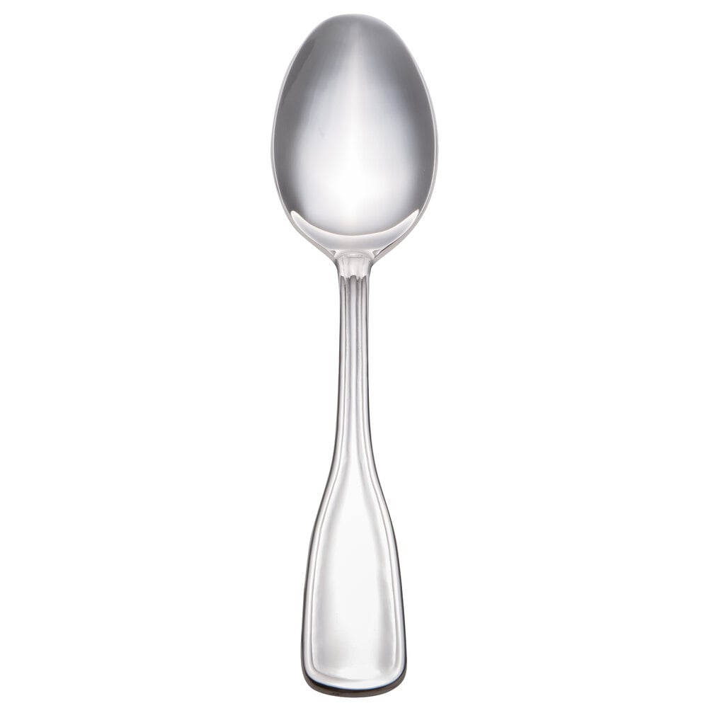 The Acopa Scottdale line features a subtle design that will both blend in with and complement a variety of dinnerware styles. Serve this spoon with vegetables and sides at your restaurant, bistro, or cafe. Its tasteful design and heavy weight make it elegant enough for a catered event, but its simplicity also make it a great everyday choice to go along with your standard dinnerware.