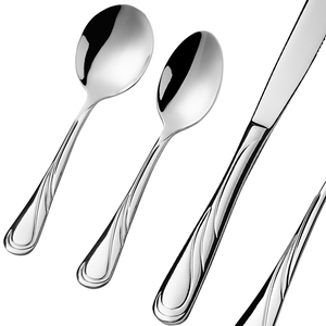 The Acopa Swirl collection features versatile flatware constructed from high-quality, 18/8 stainless steel. Each piece features a smooth handle with elegant swirls and a hand-polished mirror finish that will add a sophisticated touch to your establishment.