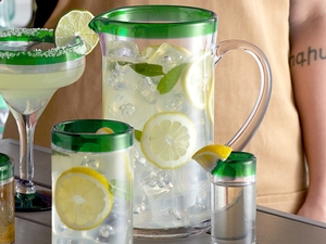 This eye-catching glass pitcher features a tall and sleek, straight-sided design with a slim, sturdy glass handle. Use it for tableside service or for use by servers. It's great for serving sangria, shared cocktails, iced tea, lemonade, and ice water. The energetic, bold green color catches the eye of guests while providing versatility to your glassware collection.