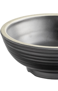 Elevate the appearance of your signature Asian-inspired dishes with this Acopa Ugoki 15 oz. matte black melamine bowl with ivory rim!