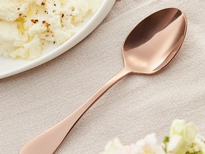 Serve this dinner / dessert spoon with sides of rice and vegetables, or your signature ice creams, custards, and other sweet treats at any casual restaurant, bistro, or catered event for an unforgettable dining experience. Each piece in this versatile collection feature curved handles with rounded ends that create a balanced, comfortable hold in your guests' hands. Its rose gold mirror polish finish adds a timeless and elegant touch to every meal, yet doesn't take the focus away from your perfectly plated culinary creations.