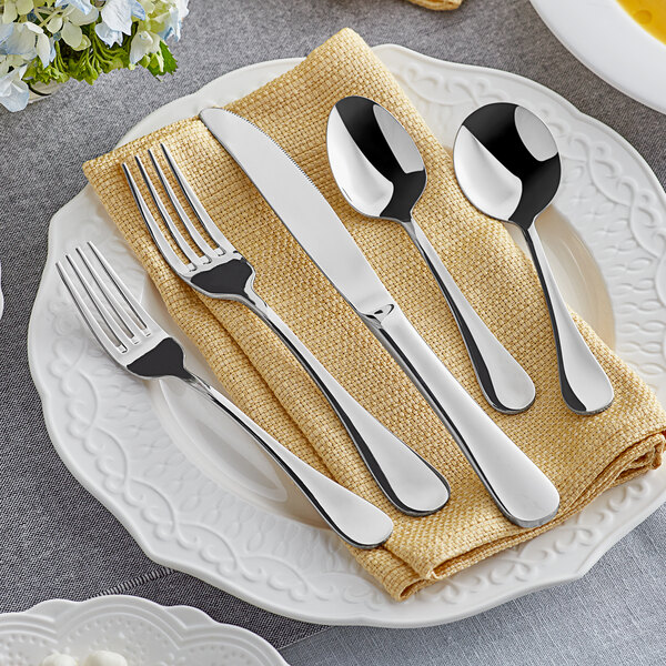 By ordering this Acopa sample, you're able to touch and see it in person to ensure it meets all the unique requirements of your foodservice space before committing to the purchase of any full case from the Acopa Vittoria line. Add a timeless element to your tabletop settings with this Acopa Vittoria 5-piece flatware sample set. Designed to offer a look that will never go out of style, the Acopa Vittoria line blends traditional and contemporary elements for an eye-catching look. Featuring sleek, curved handles, Vittoria flatware will complement nearly any setting! This set is suited to a variety of establishments and occasions, making it a versatile and classic addition to your collection.