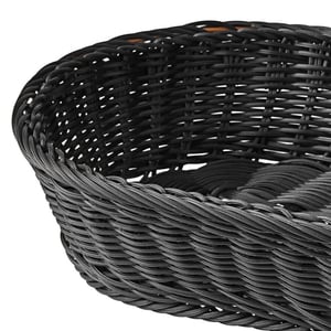 Featuring a sleek, black, woven design, this basket provides a timeless aesthetic to your establishment with the added benefit of blending in seamlessly with other decor.