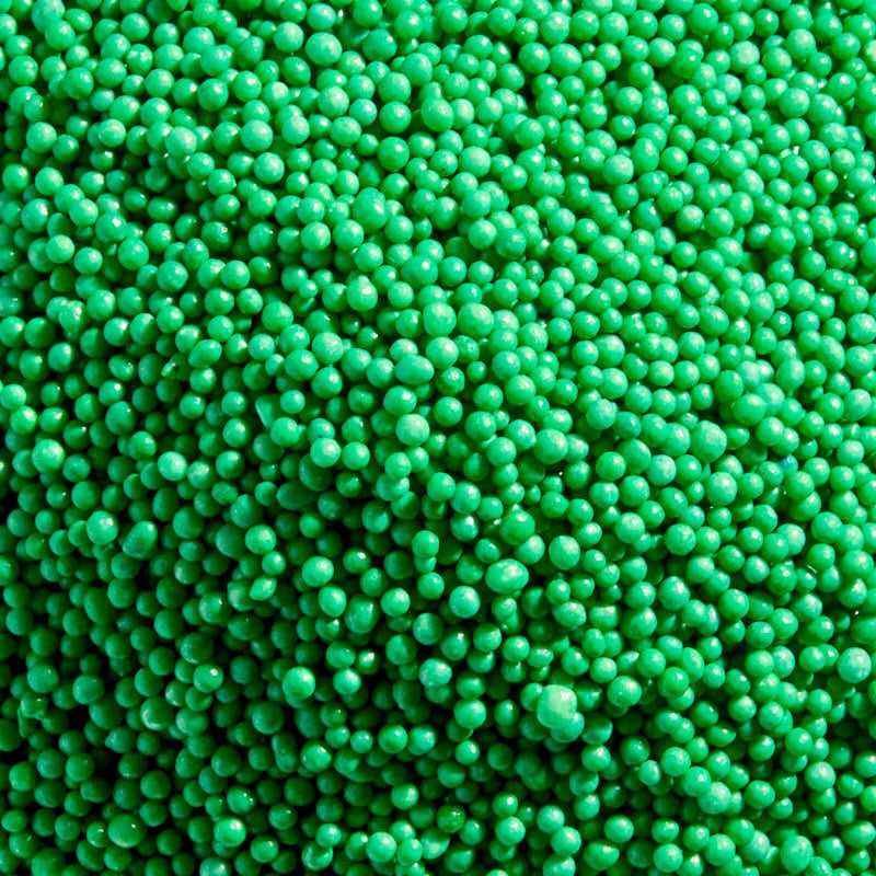 Fun and decorative, these green-colored nonpareils enhance the overall presentation of any dessert, tempting your customers back for more. The vibrant green color will pop against any backdrop, and they can easily be mixed with sweet frostings and other toppings or swirled around a cone of soft serve ice cream. Sprinkle these tiny confections into your signature cookie batter, atop a flavorful ice cream sundae, or use them to garnish frosted cupcakes.